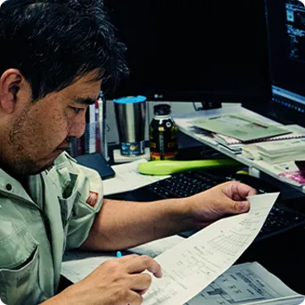 施工管理部門のメンバーの平均年齢は約40歳、発展途上の20代の若手社員から経験を重ねたベテランまで、バランスの良い自慢の陣容です。将来のキャリア形成を見据えて、長く成長・活躍し続けられる環境が吉田電気にはあります。