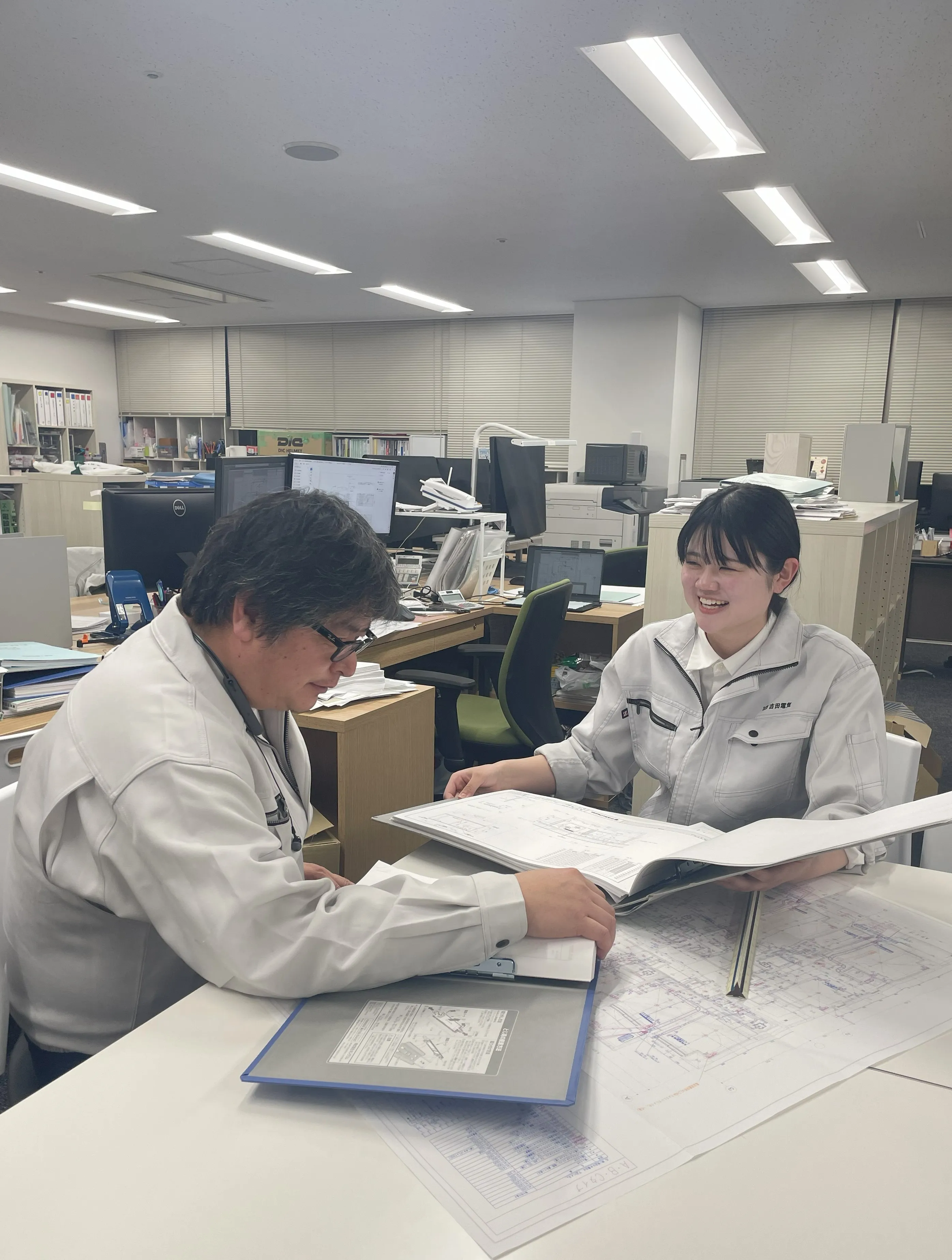 また、業界でも数少ない自社内で、設計〜管理・施工をトータルで対応することができる「⼀貫管理施⼯体制」が強みです。施工管理と現場施工を自社社員で行う為、チームワークの良さはもちろんのこと、ストレスフリーで働くことができます。